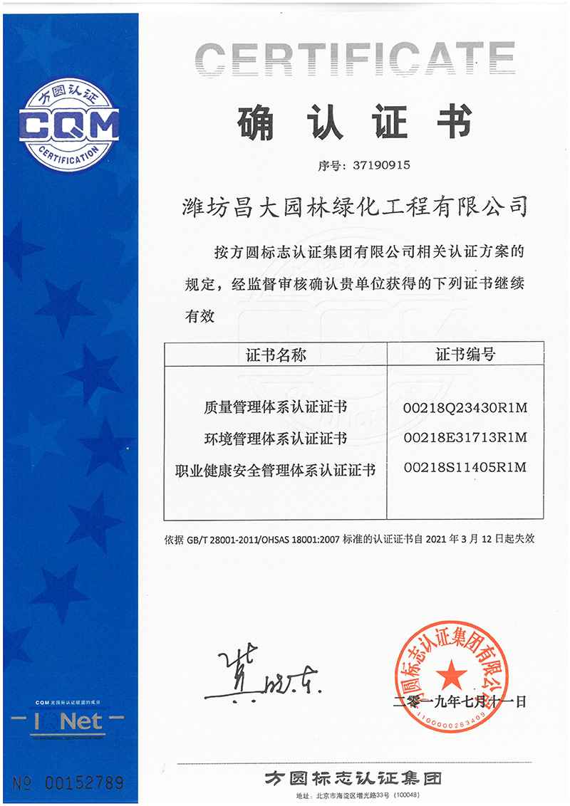 體系認(rèn)證證書