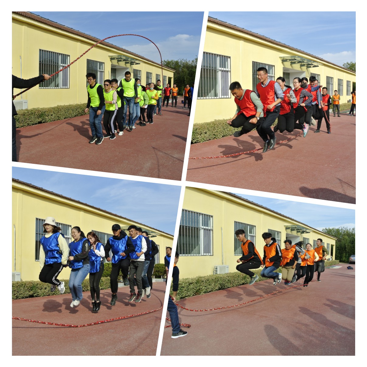 本次趣味運動會設有跳大繩、穿越電網(wǎng)、車輪滾滾、合力建塔、袋鼠跳跳、信任天梯、拔河七個比賽項目。參賽隊員全部打亂順序混編成四組,并推選出一名隊長。“跳大繩”作為傳統(tǒng)比賽項目優(yōu)先登場,由兩名隊員搖繩把握節(jié)奏,跳繩隊員快慢有序穿梭于繩索之間,隊長統(tǒng)一指揮、技術(shù)協(xié)作奠定了取勝的關鍵。“穿越電網(wǎng)”項目發(fā)揮的是隊員們?nèi)翰呷椭腔哿α康娜诤?,比賽異常激烈。?ldquo;車輪滾滾”項目環(huán)節(jié)中,各隊隊員們齊心協(xié)力,保持口令一致、步調(diào)一致、節(jié)奏一致,穩(wěn)步前行地沖向終點。合力建塔、袋鼠跳跳、信任天梯、拔河等項目也在各隊的拼搏和歡快中逐一完賽。