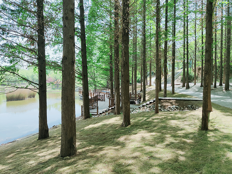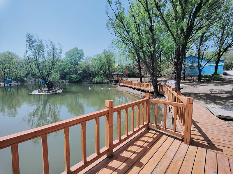 然而,建成后一個融入安丘青云山大園的這個動物園在建設之初對于園林公司來說卻是難題頻現。其一,該項目開工前,既沒有同類的工程案例可供借鑒,也沒有類似工程的施工經驗。工程開工時新冠疫情肆虐,園林公司張本星項目管理團隊憑著科學嚴謹的工作態(tài)度,精益求精的工匠精神,遵循“策劃先行,樣板引路”的工作方針,在干中學,在學中干,克服一個又一個困難,最終工程圓滿交付。之所以能夠做到這樣,主要取決于四個方面,一是昌大鐵軍的敬業(yè)精神,這是所有昌大人共同的精神財富;二是昌大人對于工程質量和景觀效果的高站位認知和高層次追求;三是園林人對于園林事業(yè)的追求以及那份執(zhí) 著的好鉆研的勁頭;四是他們對自己的完全自信。這四點匯成一起就贏得建設單位和社會的一致好評。正所謂:助人即助已,合作才能共贏。其二,如何讓新建景觀節(jié)點和原有景觀和諧統一,如何讓新建景觀節(jié)點為原有景觀加分增靚是這個工程的難點,也是園林公司項目團隊自始至終一直思考并最終解決的問題。本著人與自然和諧共生的理念,以園林人特有的專業(yè)視角,因地制宜,錯落有致,移步易景,反復論證,形成設計方案;在施工過程中再不斷優(yōu)化完善,最終完美呈現在大眾面前。例如雁棲湖,原來是游覽路線邊一個三面山體圍成的垃圾場,經過垃圾清理,排木成道,引水上山,疊石成瀑,環(huán)山成湖,湖上建亭,山上綠樹成蔭,水中大雁遨游,多么和諧宜人。再如松鼠林,就是在原有水杉樹林中建設松鼠館舍,游人漫步林中,觸手可及處,松鼠在上下歡跳,是小朋友們的最愛。